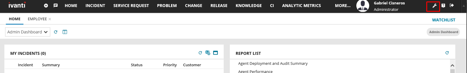 - Abrimos nuestro Service con el perfil de Administrador y damos clic en la llave de configuración