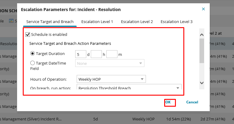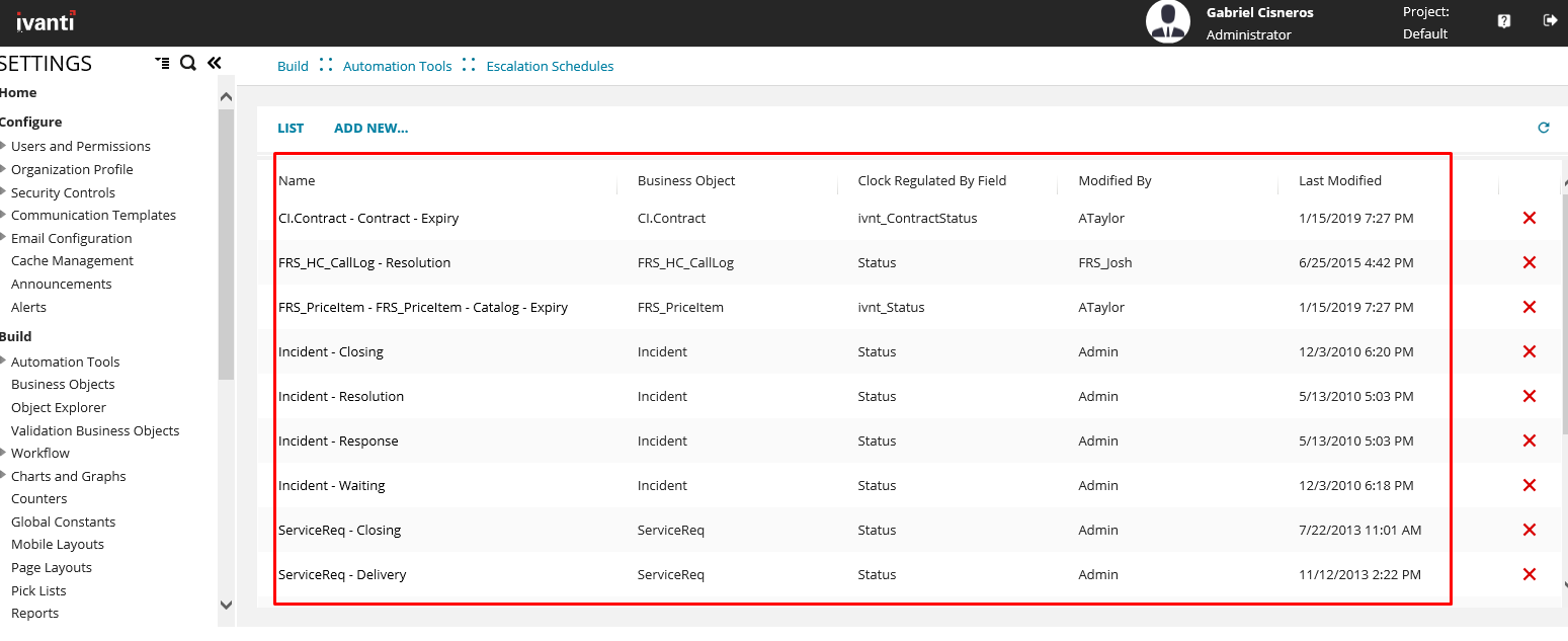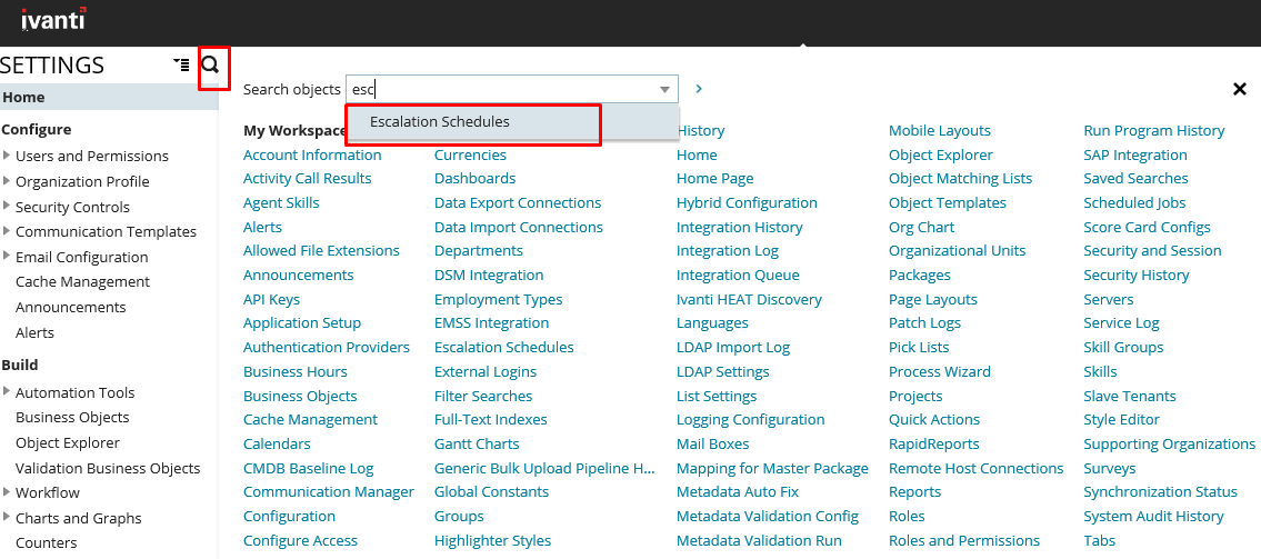 - Damos clic en el icono de lupa y buscamos Escalation Schedules