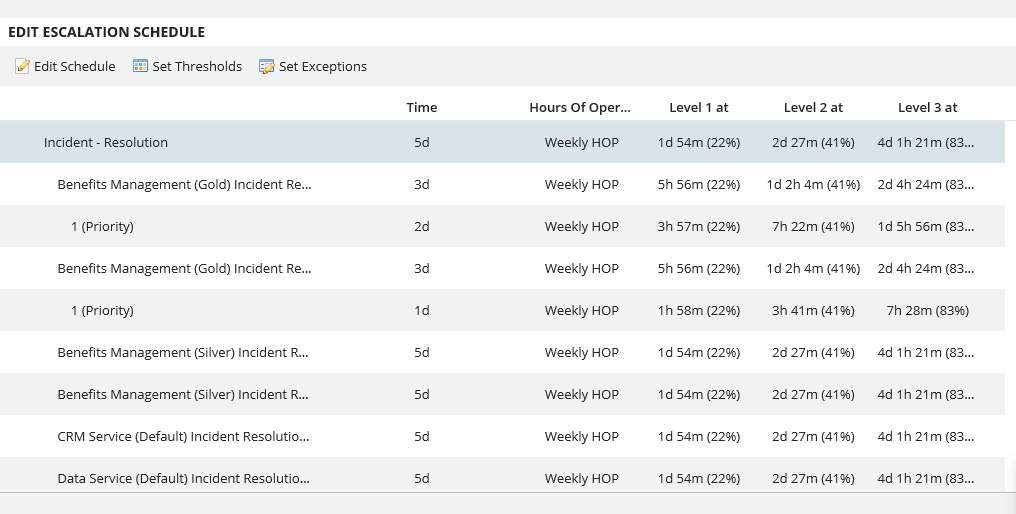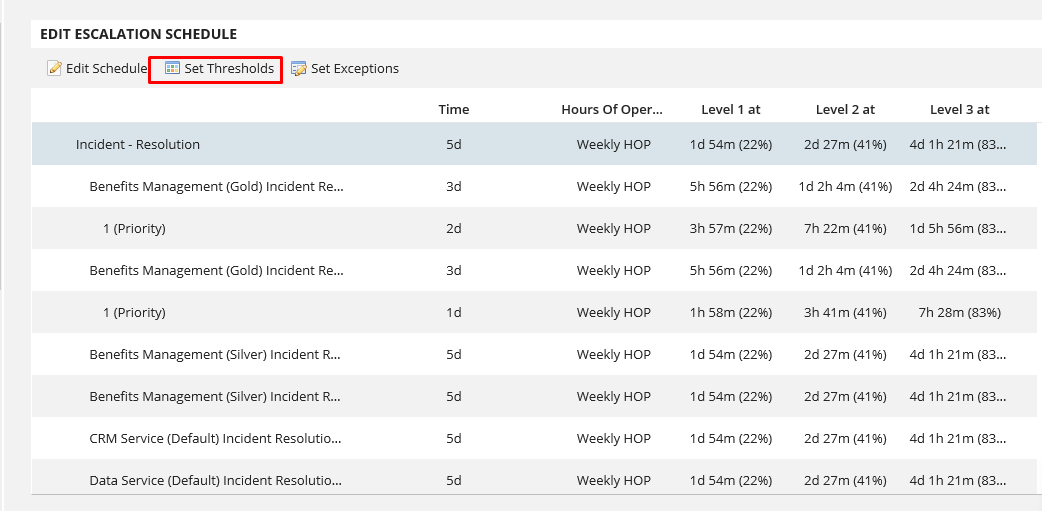 - Para modificar un tiempo de escalación damos clic en uno de ellos y después en Set thresholds