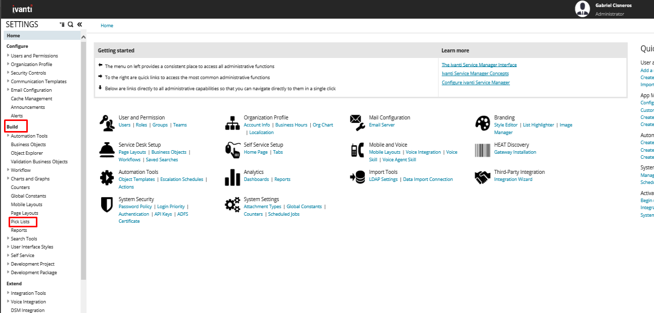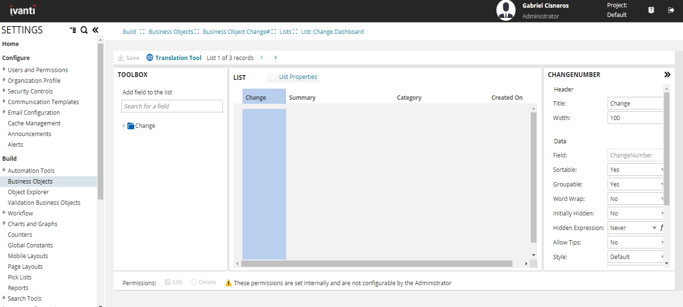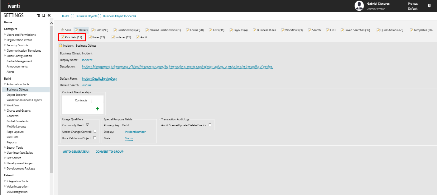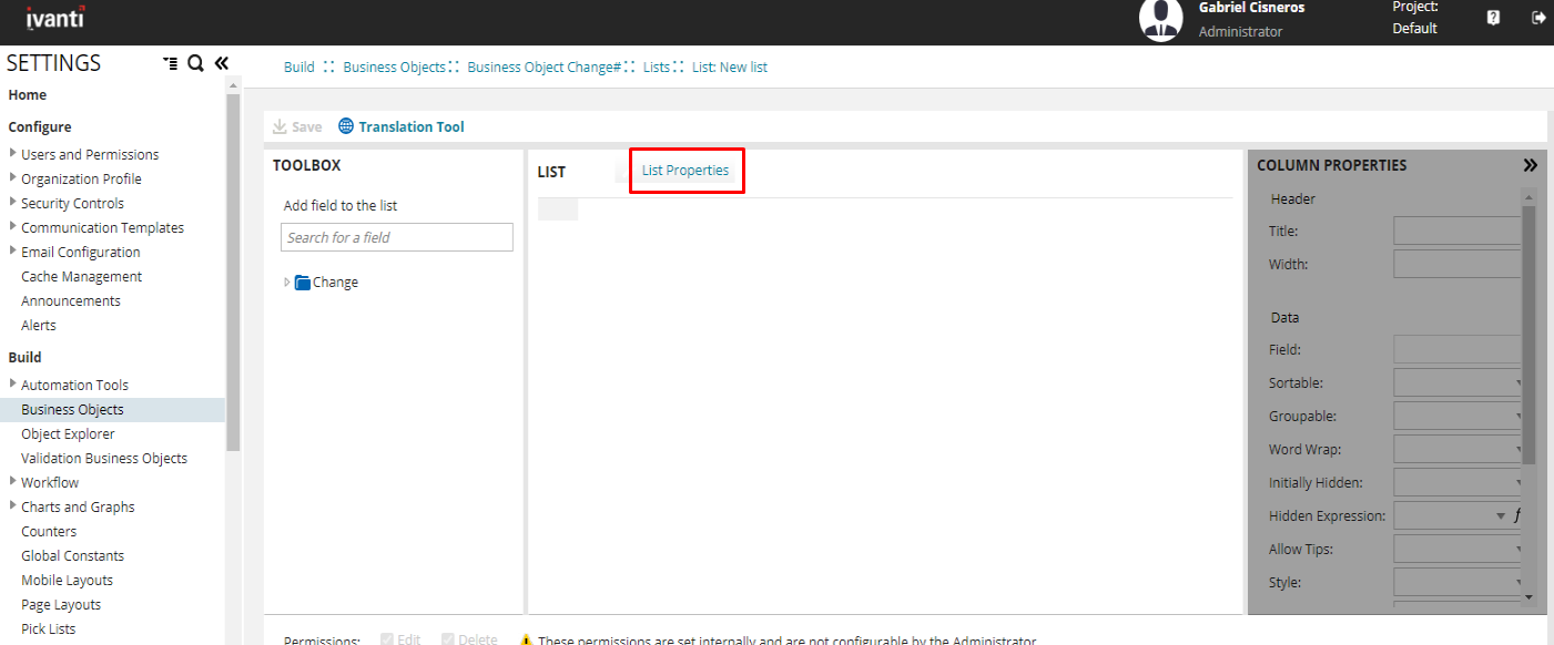 1.Desde la Consola de configuración, haga clic en Generar> Business Objects para abrir el espacio de trabajo de Business Objects.