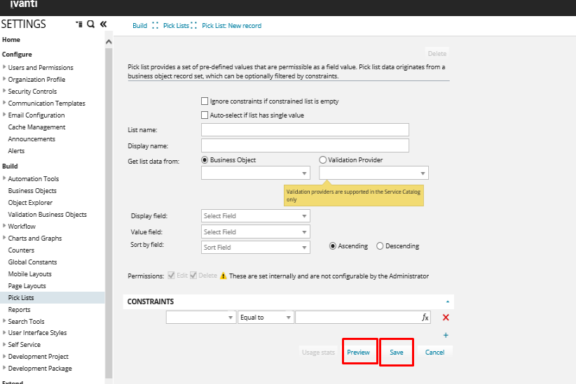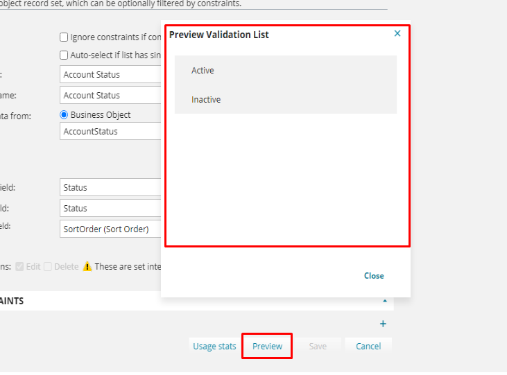 5.(Opcional) Haga clic en Vista previa para ver el aspecto de la lista de selección antes de guardarla.